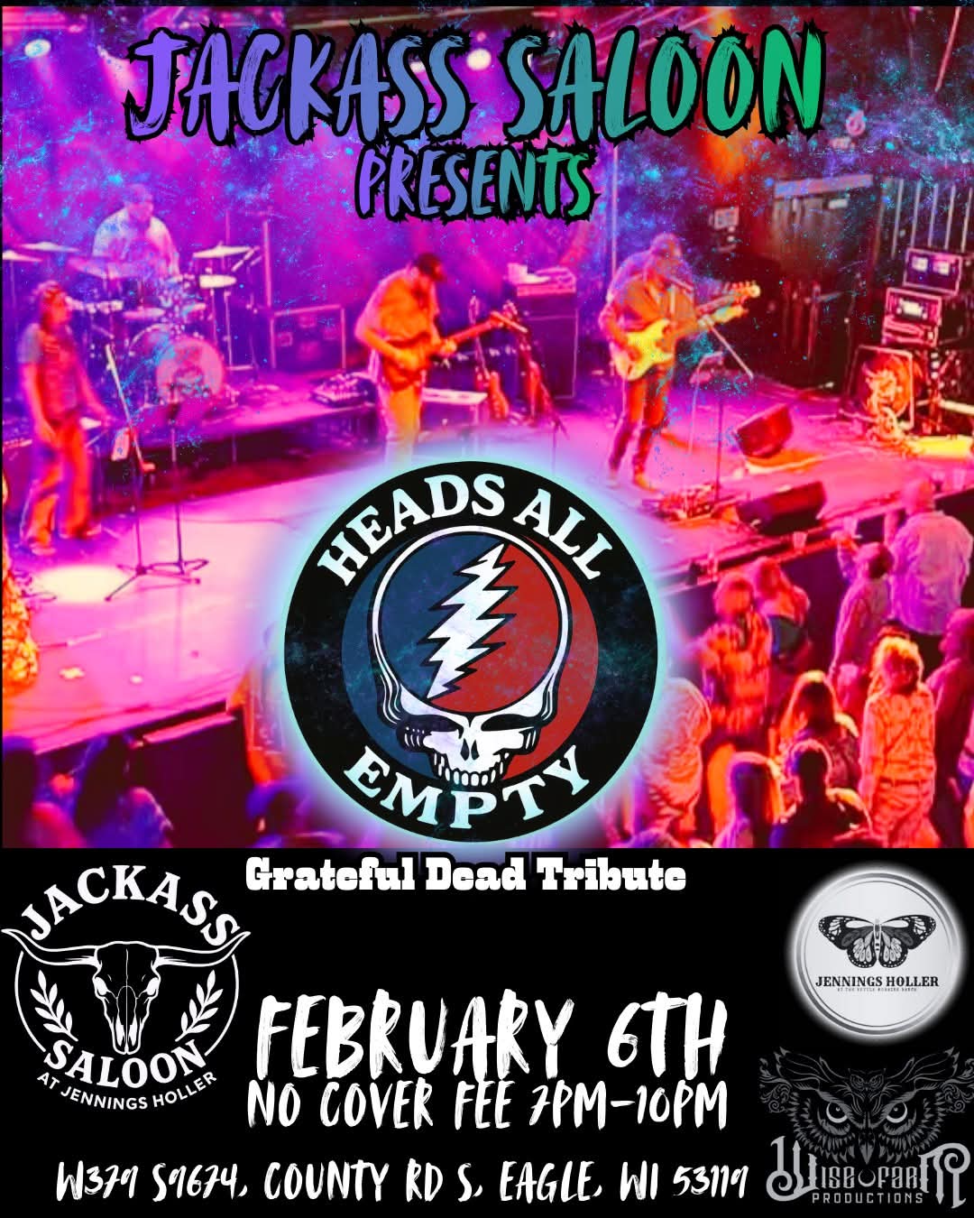 Get ready for a night of timeless jams and psychedelic grooves as Heads All Empty brings a Grateful Dead Tribute to the stage at The Jackass Saloon at Jennings Holler. Dance, drift, and get lost in the music with fellow Deadheads for an intimate, high-energy live show.
